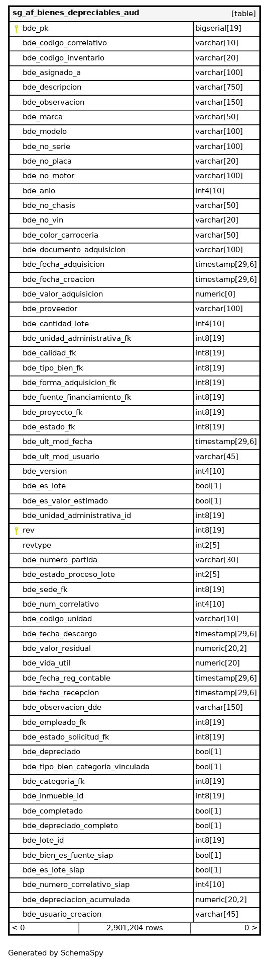 | sg_af_bienes_depreciables_aud_pkey | Primary key | Asc/Asc | bde_pk + rev |