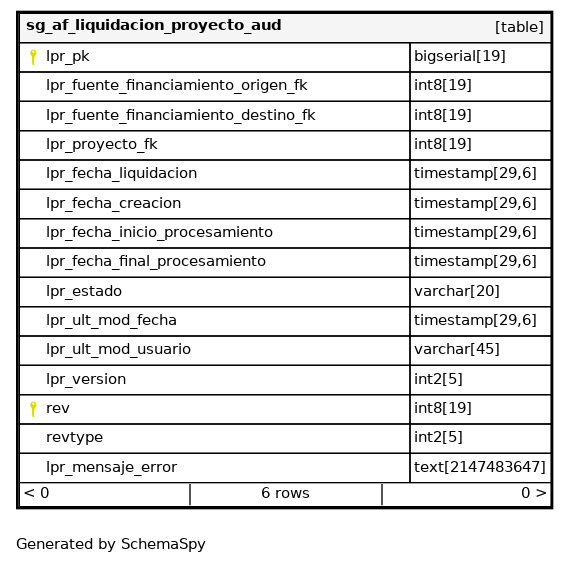 | sg_af_liquidacion_proyecto_aud_pkey | Primary key | Asc/Asc | lpr_pk + rev |