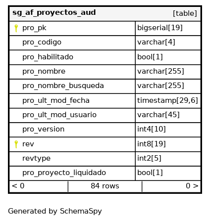 | sg_proyectos_aud_pkey | Primary key | Asc/Asc | pro_pk + rev |