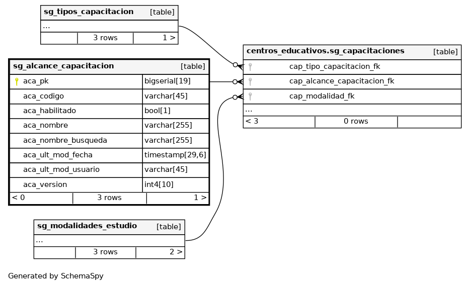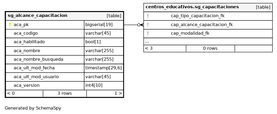 | sg_alcance_capacitacion_pkey | Primary key | Asc | aca_pk |