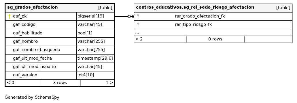| sg_grados_afectacion_pkey | Primary key | Asc | gaf_pk |
