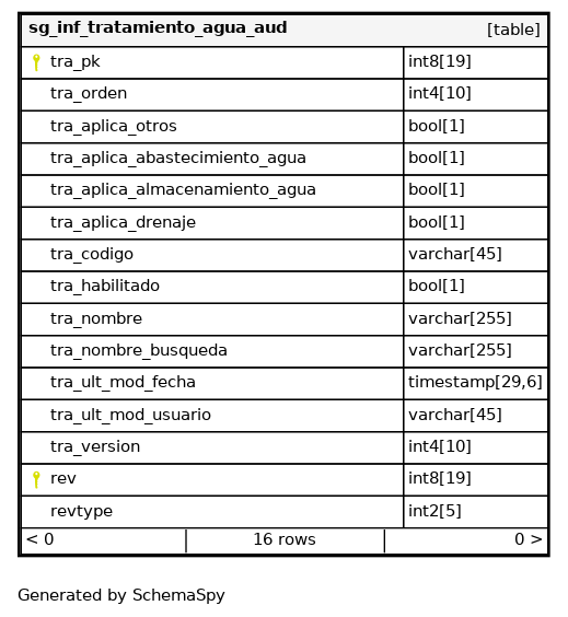 | sg_inf_tratamiento_agua_aud_pkey | Primary key | Asc/Asc | tra_pk + rev |