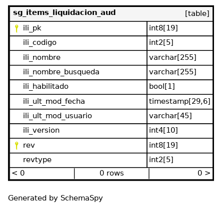 | sg_items_liquidacion_aud_pkey | Primary key | Asc/Asc | ili_pk + rev |