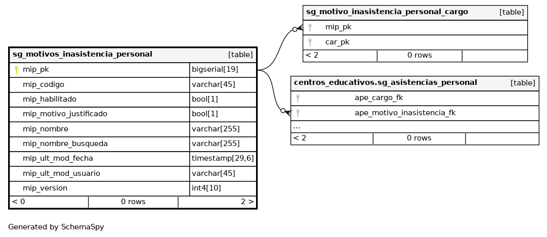 | mip_pk | bigserial | 19 | √ | nextval('catalogo.sg_motivos_inasistencia_personal_mip_pk_seq'::regclass) |