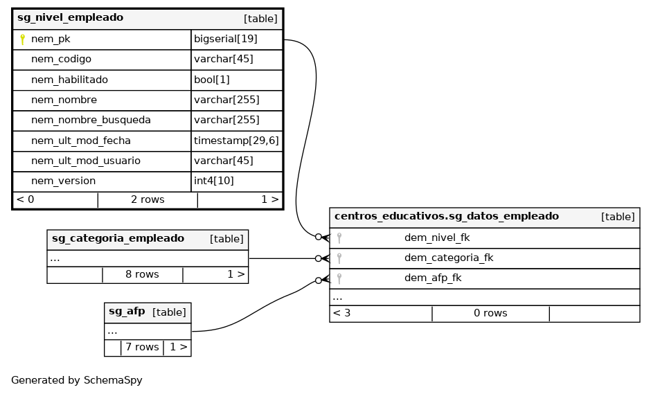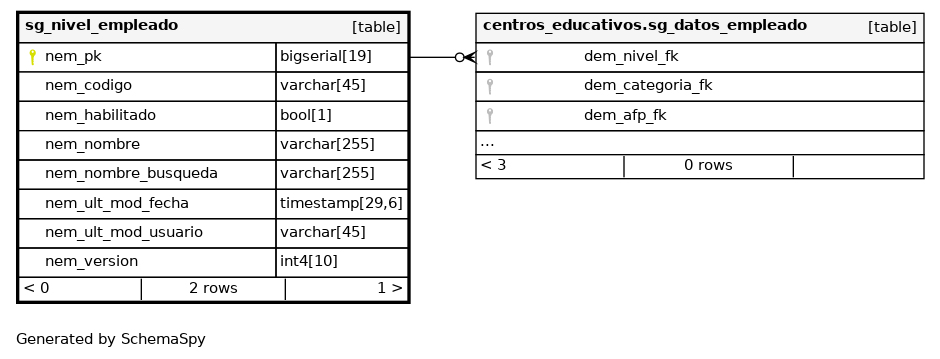 | sg_nivel_empleado_pkey | Primary key | Asc | nem_pk |