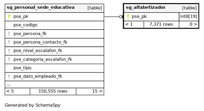 | sg_alfabetizador_pkey | Primary key | Asc | pse_pk |