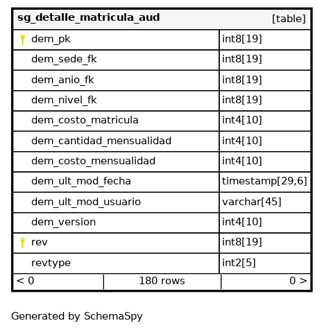 | sg_detalle_matricula_aud_pkey | Primary key | Asc/Asc | dem_pk + rev |