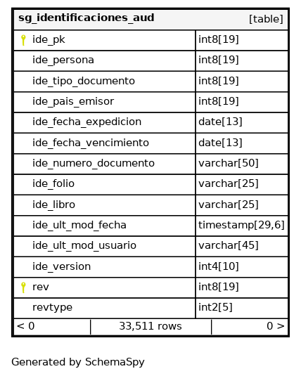 | sg_identificaciones_aud_pkey | Primary key | Asc/Asc | ide_pk + rev |