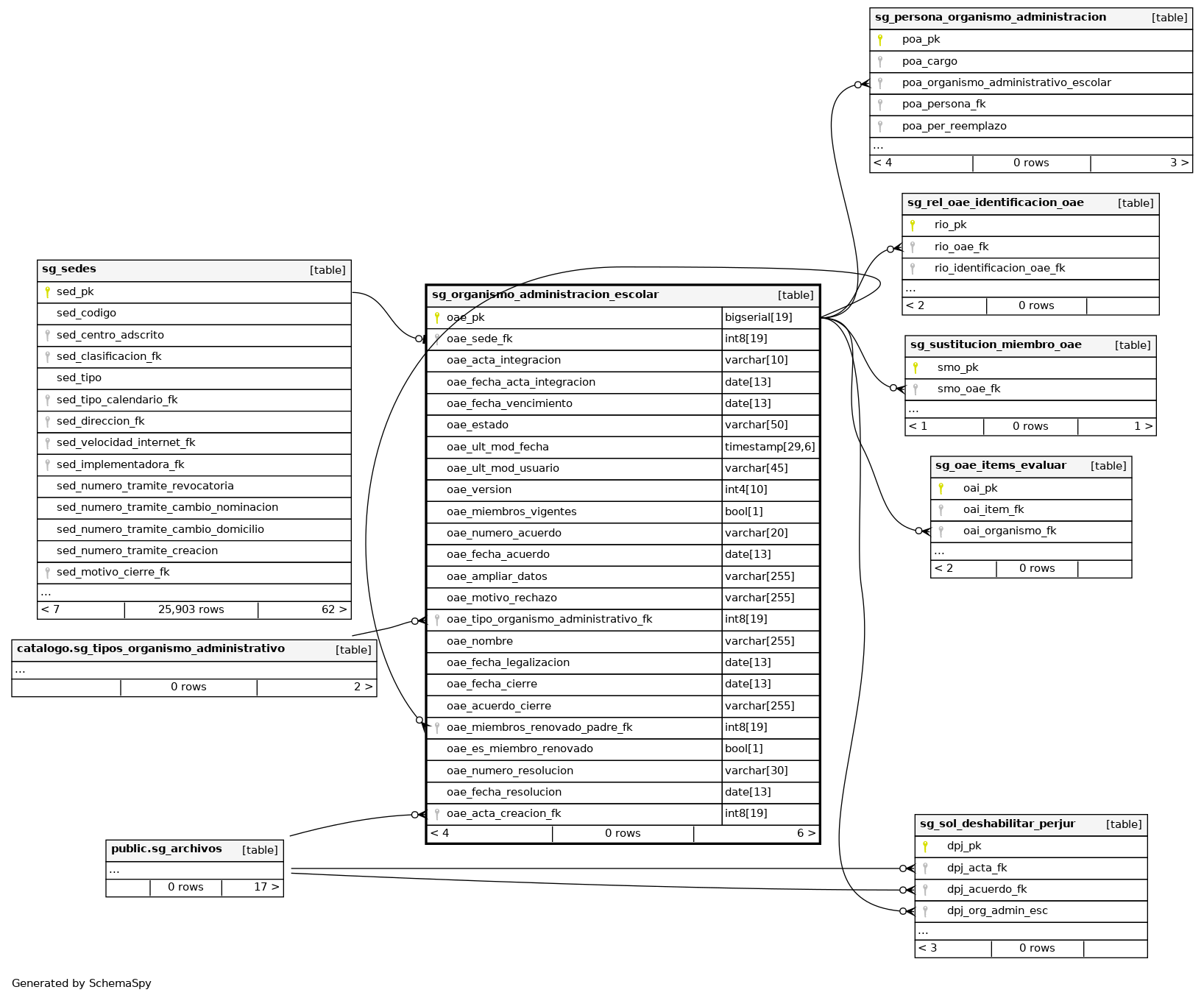 | sg_organismo_administracion_escolar_pkey | Primary key | Asc | oae_pk |