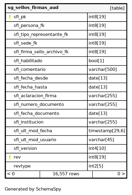 | sg_sellos_firmas_aud_pkey | Primary key | Asc/Asc | sfi_pk + rev |