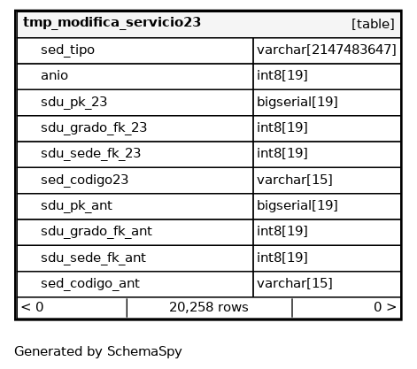 | sdu_pk_23 | bigserial | 19 | √ | nextval('centros_educativos.tmp_modifica_servicio23_sdu_pk_23_seq'::regclass) |