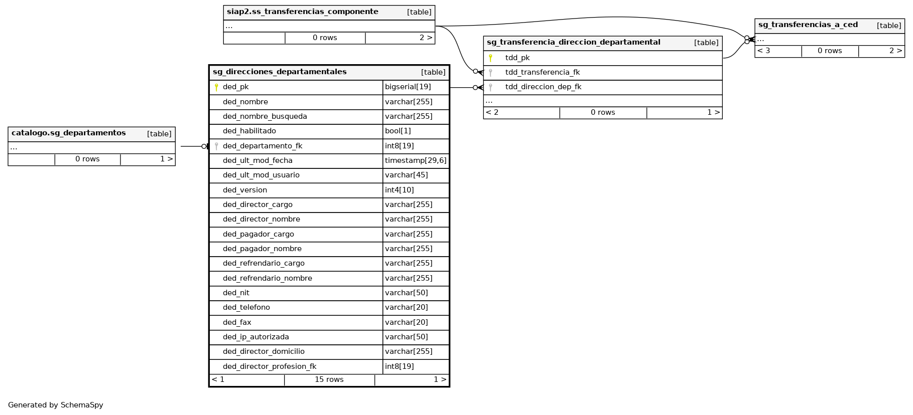 | ded_pk | bigserial | 19 | √ | nextval('finanzas.sg_direccion_departamental_ded_pk_seq'::regclass) |