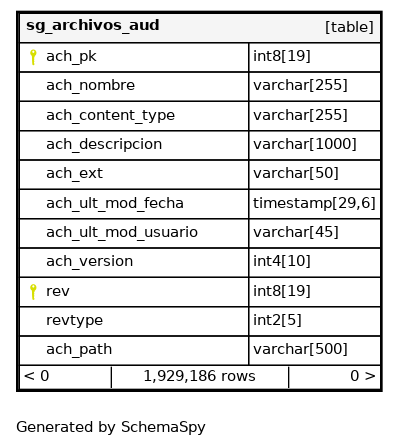 | sg_archivos_aud_pkey | Primary key | Asc/Asc | ach_pk + rev |