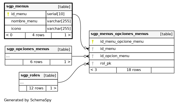 | sgp_menus_pkey | Primary key | Asc | id_menu |